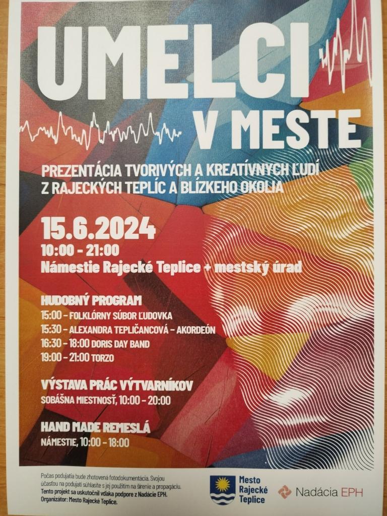 Umelci v meste 15.06. 2024 Rajecké Teplice. Prezentácia tvorivých a kreatívnych ľudí z Rajeckých Teplíc a blízkeho okolia.