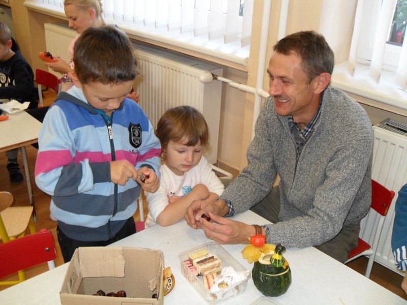 Tak ako každý, aj tento rok naše detičky so svojimi rodinnými najbližšími a spolu s p. učiteľkami prežili úžasný šarkaniádovy a tekvičkový deň. Doobeda deti s pomocou p. učiteliek napiekli chutné jabĺčkové koláčiky, popoludní sme sa vybrali hľadať strateného šarkana, ktorého uniesol zlý drak. Naše šikovné deti nemali žiadny problém vyriešiť hádanky, ktoré po celej ceste k stratenému šarkanovi a pokladu museli vyriešiť. Po nájdení šarkana a pokladu ame sa radovali aspoň s niektorých lietajúcich šarkanov, keďže vietor fúkal "len aby sa nepovedalo". Keď sme už dosť polietali, presunuli sme sa do MŠ, kde sme s plodov jesene vyrábali rôzne výtvory, s ktorých sme si vyzdobili našu MŠ. Celý deň bol úžasný! Ďakujeme všetkým zúčastneným.