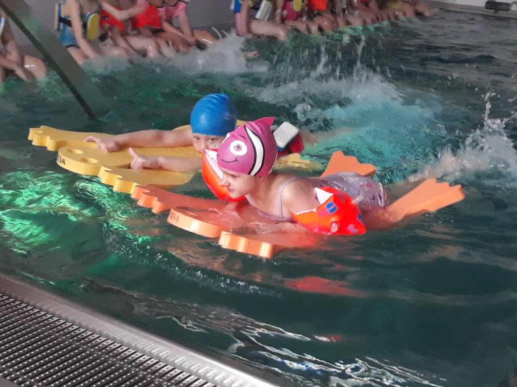 Plávanie je ideálna pohybová aktivita a má osobitný význam pre harmonický a zdravý vývoj detí. Plávaním sa odstraňujú rôzne nedostatky a chyby v držaní tela detí. Zohráva dôležitú úlohu pri otužovaní. Aj tento školský rok sa staršie deti zúčastnili predplaveckého výcviku. Počas výcviku sa naučili využívať všetky základné zručnosti ako je splývanie, dýchanie do vody, potápanie, skoky do vody, pohyby dolných a horných končatín a súvislé plávanie krátkych vzdialeností. Bol to pre nich veľký zážitok a ako odmenu za odvahu dostali „Mokré vysvedčenie". Ďakujeme!